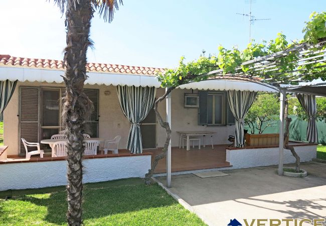 Casa ampia, con due camere da letto, soggiorno, cucina e un bagno, all'esterno vi è un altro bagno, molto comodo, per quando si torna dal mare. Molto luminosa e ventilata. Il giardino e la veranda magnifici. Tutto ben curato. Complimenti all'agenzia per la cordialità!